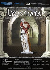 Nach einer ziemlichen technischen Ringerei um Details und Feinheiten kann ich heute endlich einen Blick auf das finale Poster für das neue Stück von Actor’s Nausea, der Theatergruppe des anglistischen Instituts, feilbieten: Lysistrata.