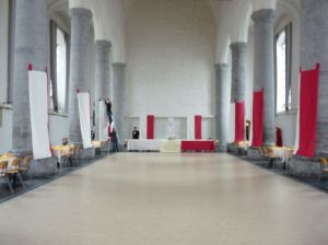 Während der Vorbereitungen: Die Aula Carolina in ihrer vollen, beeindruckenden Größe (Foto © Saltatio Historisches Tanzen Aachen e.V. / Anke Simon)