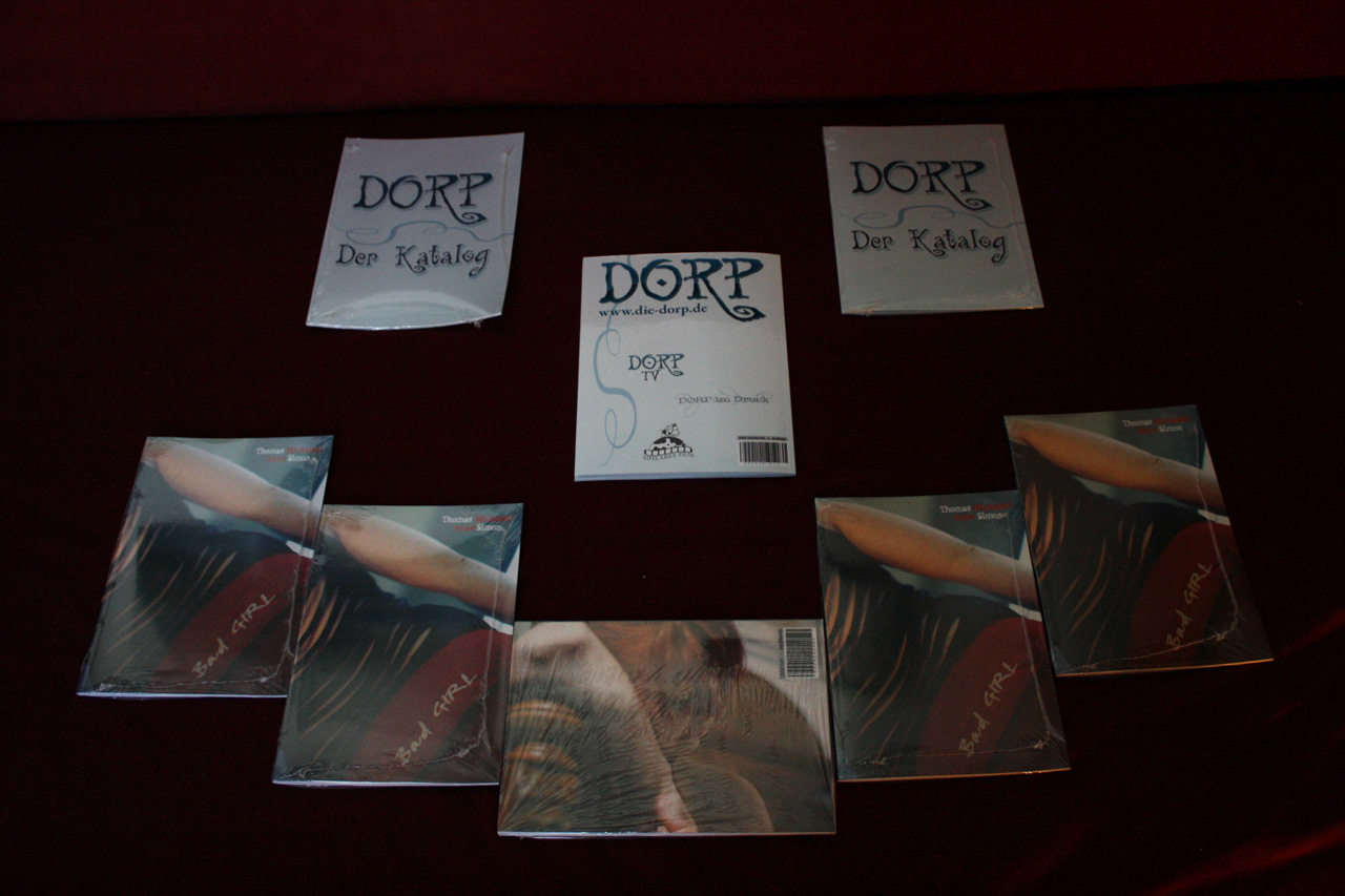 Nebenstehend auf dem Foto seht ihr gleich zwei Buchlieferungen, die im Laufe der Woche hereingeschneit sind. Das eine ist DORP – Der Katalog, den es als Ansichtsexemplar ja am Stand der DORP auf dem Feencon anzuschauen und danach auf der entsprechenden Webseite auch als Download geben wird. Sehr hübsch geworden, wenn auch meinem persönlichen Perfektionismus nur zu 95% gewachsen. Aber definitiv schnieke.