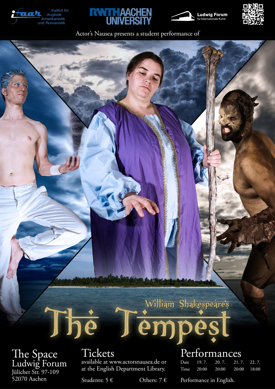 Wie immer noch einmal ein Hinweis, bevor es zu spät ist: Heute Abend eröffnet im Space im Aachener Ludwig Forum die Aufführung von „The Tempest“ der Theatergruppe Actor’s Nausea.