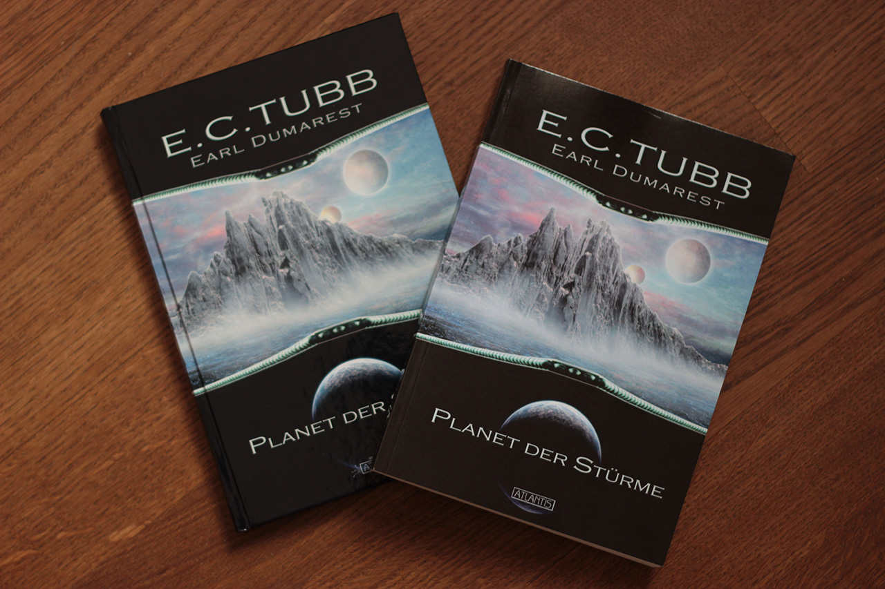 Am Wochenende traf ein mir sehr, sehr wichtiges Paket bei mir ein: Meine Belegexemplare zum ersten Earl Dumarest-Roman von E.C. Tubb in meiner Übersetzung sind da. Planet der Stürme heißt das Buch, so wie auch die alte Taschenbuchausgabe betitelt war, und gibt sich je nach Geschmack als formschönes Softcover oder Hardcover mit 156 Seiten. Oder eben als eBook, aber dazu hab ich natürlich keine Belege zu zeigen.