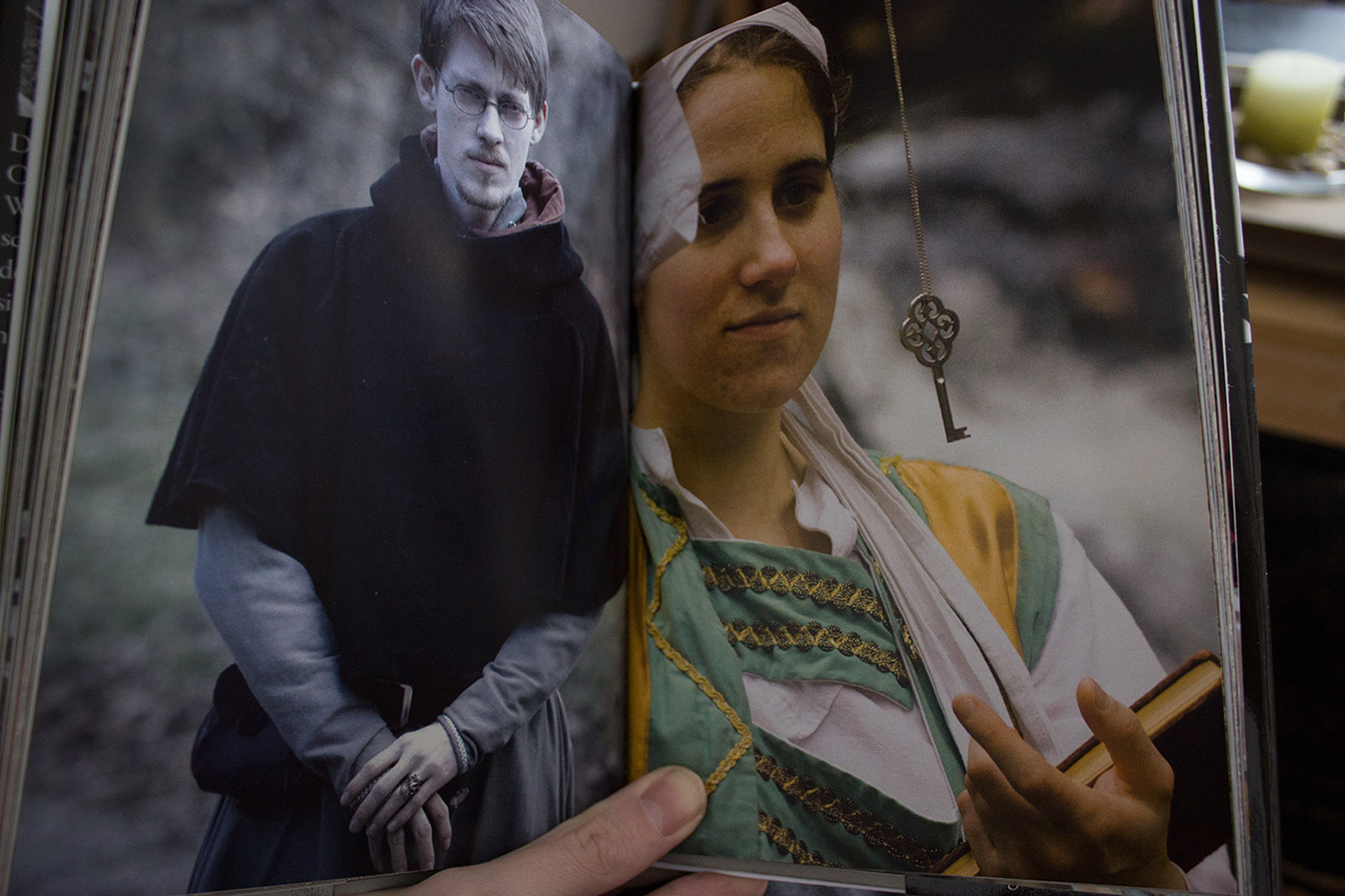 Interessanterweise geht die Psychologie dahinter aber sogar noch weiter. Konditioniert durch die allgemeine Lese- und, im weiteren Sinne, „Buchbenutzungs-Erfahrung“, wirkt die recto-Seite generell dominanter auf uns. Nicht nur während des fortlaufenden Prozesses des Blätterns, sondern auch danach. Das nebenstehende Bild zeigt eine Doppelseite aus dem ersten Band der Bilder aus Condra, und auch wenn es natürlich andere Faktoren wie die Farbigkeit oder den gewählten Ausschnitt gäbe, so wirkt die rechte Seite nicht zuletzt deshalb dominanter, weil sie eben rechts ist.