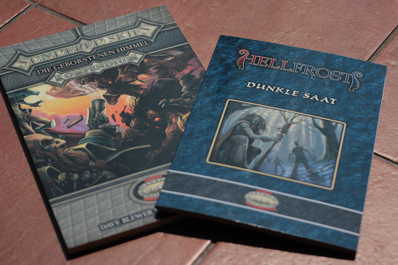Beide Bücher sind über alle üblichen Kanäle lieferbar. Dunkle Saat wechselt für 9,95 Euro den Besitzer, das Sundered Skies Kompendium möchte derweil gegen 19,95 Euro getauscht werden