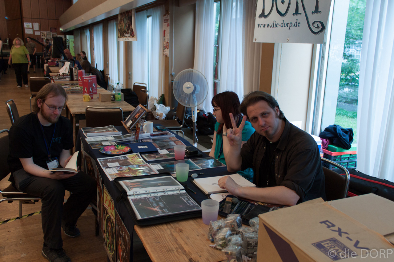 Während der DORP-Stand auf der RPC ja immer tatsächlich vor allem dazu dient, auch neue Leute an unser Tun und Treiben heranzuführen, ist der „Meet’n’Greet“-Charakter auf der Feencon sehr viel ausgeprägter ­– und insofern waren viele, viele Leute bei uns am Stand, haben mit uns geplaudert, gescherzt, kurzum eine gute Zeit gehabt. Auch sind es bei weitem zu viele Leute gewesen, als dass ich hier jetzt wild alle aufzählen könnte – dann vergesse ich nur jemanden und es ist noch unfairer.