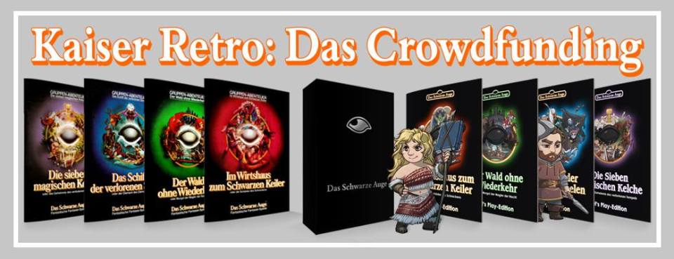 Und zuletzt mag ich noch etwas „von der Arbeit“ mit einbringen und einfach noch mal auf das großartige Kaiser-Retro-Crowdfunding hinweisen, was hier gerade eifrig brummt im Netz. Eine Neuauflage von DSA 1 ist für sich genommen ja schon cool, dass ich aber auch noch daran mitarbeiten kann, das ist der Hammer. Es bleiben noch knapp zwei Wochen … also ran an den Speck, wenn ihr da genauso Spaß dran habt wie ich.