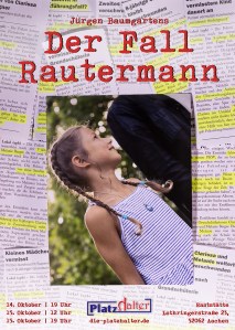 Ich schrieb ja erst die Tage noch dazu: Der Fall Rautermann wird diesen Monat in Aachen vom Platzhalter Theater aufgeführt – und ich habe alles rund um Poster, Flyer und co. gestaltet.