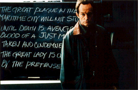 Frank Black, der Protagonist, ist also entsprechend Profiler, arbeitet freischaffend für die titelgebende Millennium-Gruppe und hilft den Ermittlungsbehörden bei der Suche nach ganz, ganz grausamen Tätern. Seine besondere Gabe ist, dass er sich – auch visuell intensiv dargestellt – in ihre Köpfe versetzen kann. Er trägt, das schwingt schon früh mit, ein Dunkel in sich, das ihm hilft, sie zu verstehen, aber das eben zugleich unter seiner Oberfläche schwelt und auch ein Aspekt von ihm ist.