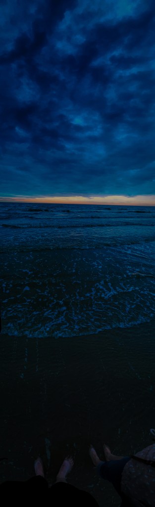 Als wir dann Freitagabend am Strand standen, die Füße im Sand vergraben, als der laue Seegang unsere Knöchel umspülte und der Wind den Duft von Salz und Seetang zu uns trug, dämmerte mir etwas, was sich irgendwie gleichermaßen trivial und profund anfühlte. Wir waren dort.